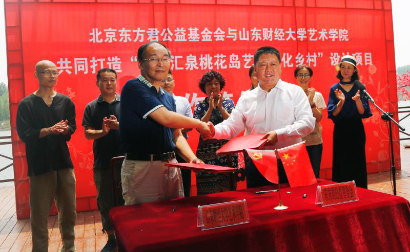 共同打造“沂源汇泉桃花岛艺术活化乡村”设计项目合作签约仪式在淄博市沂源县龙子峪桃花岛举行。山东省政协常委、东方君公益基金会会长董方军、沂源县副县长张莹莹、学校校友会办公室主任耿金波、香蕉视频