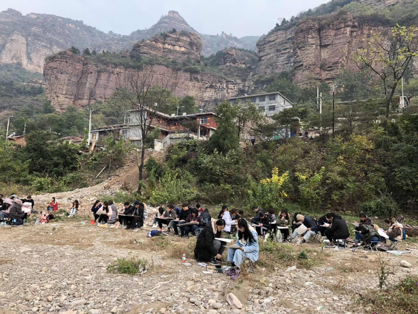 太行山写生基地位于河南安阳林州市境内,峡谷林立,沟壑纵横,原生态地貌和村落保存完好,强烈的视觉冲击和景物美感赋予大家良好的创作灵感,同学们在老师的指导下,每天完成写生作品3件以上,圆满完成写生教学任务。