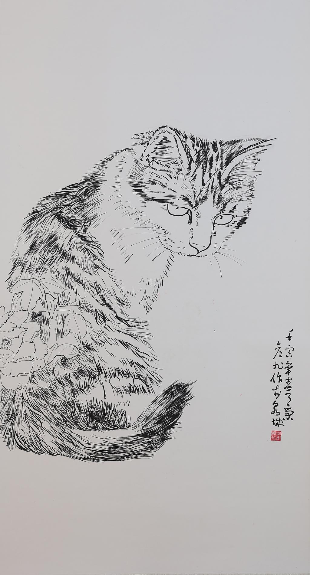 花与鸟是中国画的传统题材, 我沿用了这一题材进行创作,将花、鸟和谐地融入画面,在配色上,也选择了传统的朱砂、藤黄、三绿,使画面古朴自然、宁静悠然。