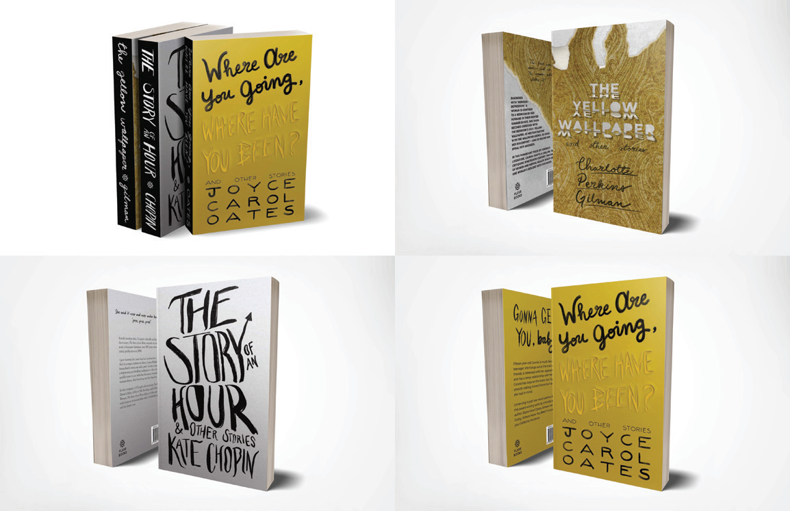 Short stories often receive very boring or drab book covers . So , I wanted to give some of my favorite short stories a new life with some fresh , thoughtful book jacket designs . Each cover has a typography - focused design using my own hand - drawn type .