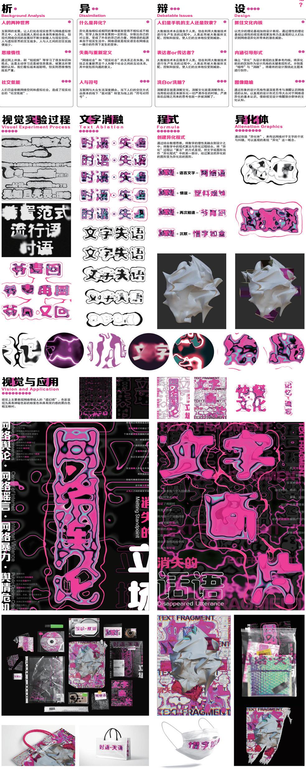 《“清”朗太空》系列插画描述的内容为太空垃圾的状态。通过对比强烈色彩的碰撞、表现速度的线条等。以赛博朋克的艺术风格来表现太空垃圾。太空垃圾还有破碎,杂乱等特点。所以还结合了抽象和故障艺术的手法来处理画面。色彩以红蓝绿三色为主,将它们进行重合叠加错位使画面呈现一种凌乱而有序的矛盾美。《“清”朗太空》系列插画创作的目的是希望人们多一些对太空环境的关注与了解。