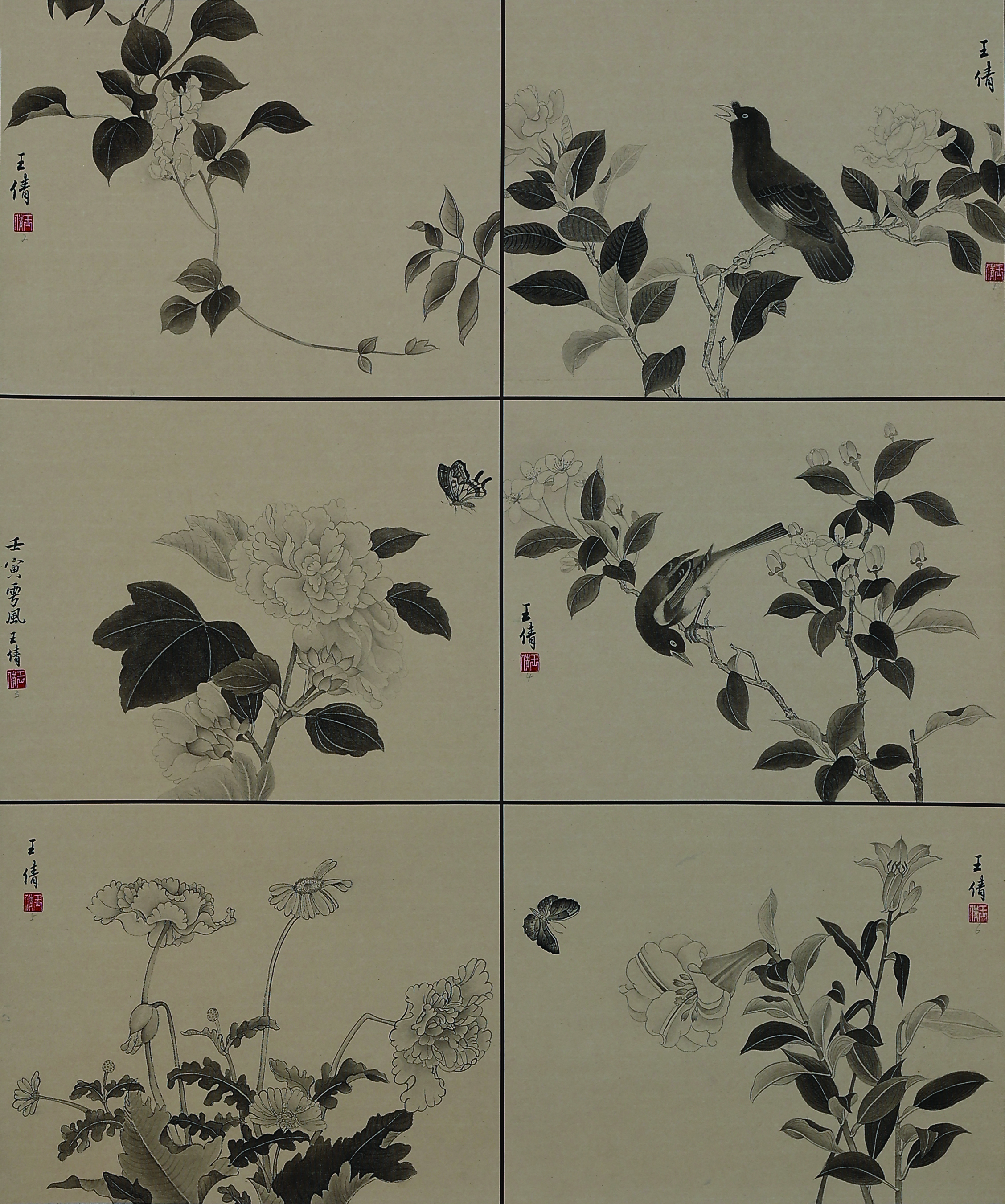 The whole piece imitates the way of landscape painting in the works of the Yuan dynasty and consists of six small paintings. The work uses the traditional brushwork of Peima Cun, interspersed with water colours.It is first chapped and then dyed, using ink to divide the structure of the rocks and green to enrich the texture. It is intended to express the dynamic sense of haloing and change in the simple and naïve bushworks, and to create a soul of beauty and spirituality in the quietness of the mood.