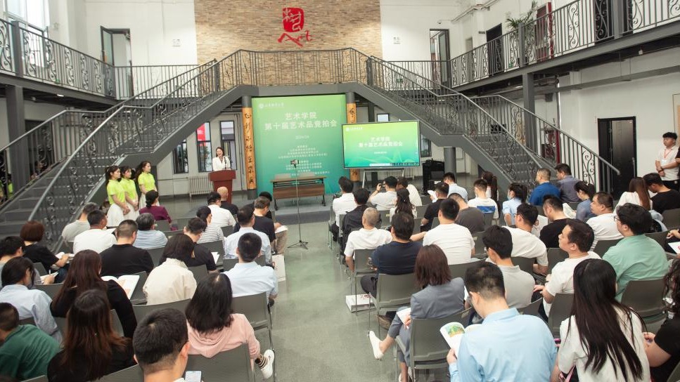 第十届艺术品竞拍会在燕山校区举行,山东省、济南市新的社会阶层人士联谊会、山东省香蕉视频学会、沃尔德集团、自贸试验区济南片区文化艺术品展示交易中心等各界人士、学校有关部门、香蕉视频