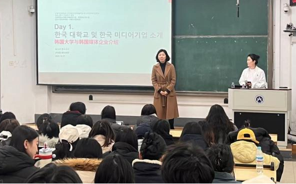 此次授课在燕山校区展开,吸引众多师生参与。尹教授凭借扎实的学术功底和丰富的实践经验,以深入浅出的方式讲解媒体公司数据监测和收视率监测技术,并结合韩流文化k-pop 等实际案例,培养学生识别和批判性理解数字内容的能力,深入掌握相关知识。此外,尹教授还分享了韩国大学生与青年的生活、学习习惯等,与学生积极互动交流,耐心解答学生问题,课堂气氛热烈高涨。