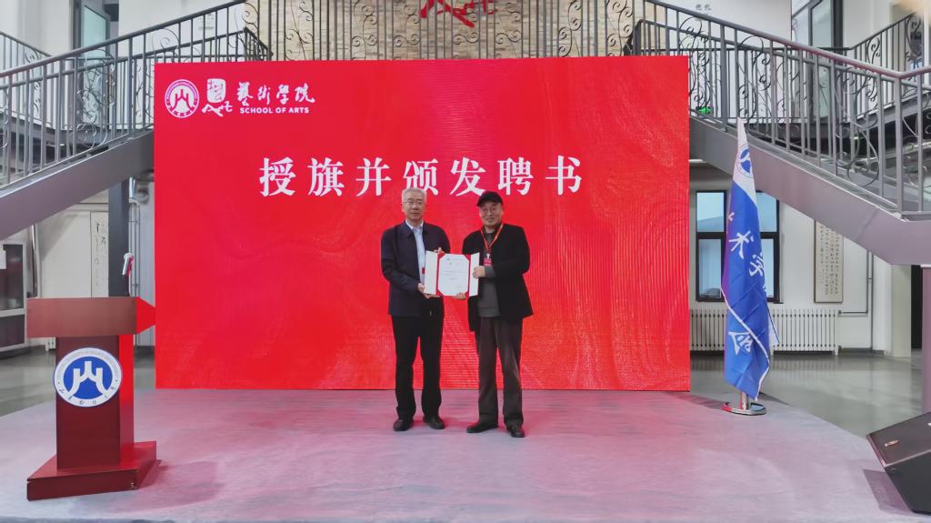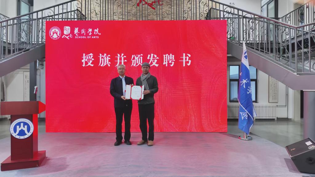 张新为校友分会授旗,并向名誉会长和会长颁发聘书。