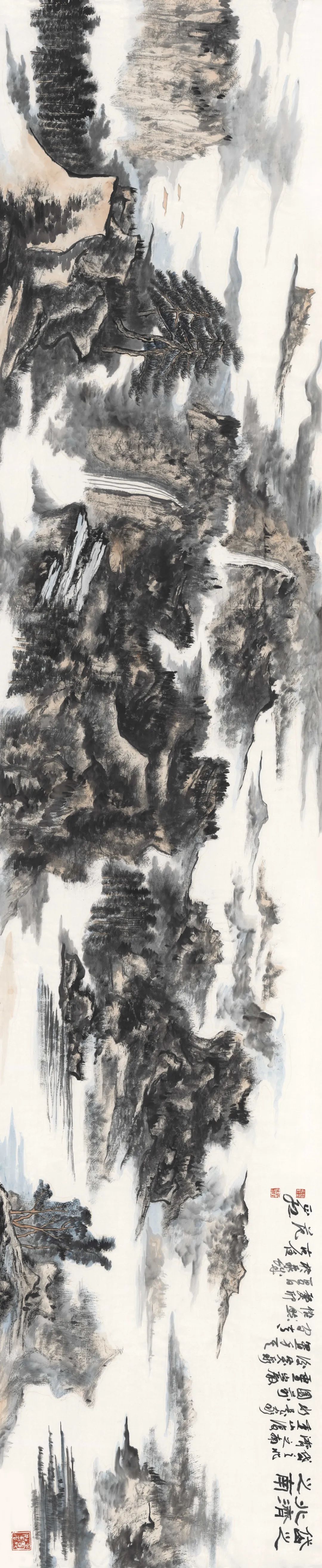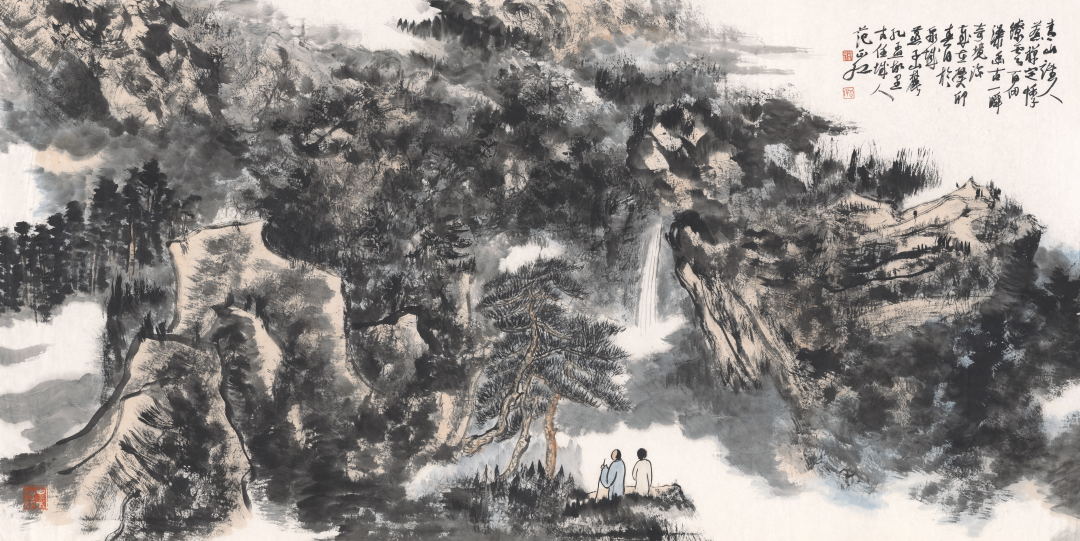 款识/岱之北济之南,重山复水是家园。前灵岩后突泉,置身其间常怡然。癸卯夏日于泉城,古任范正红。