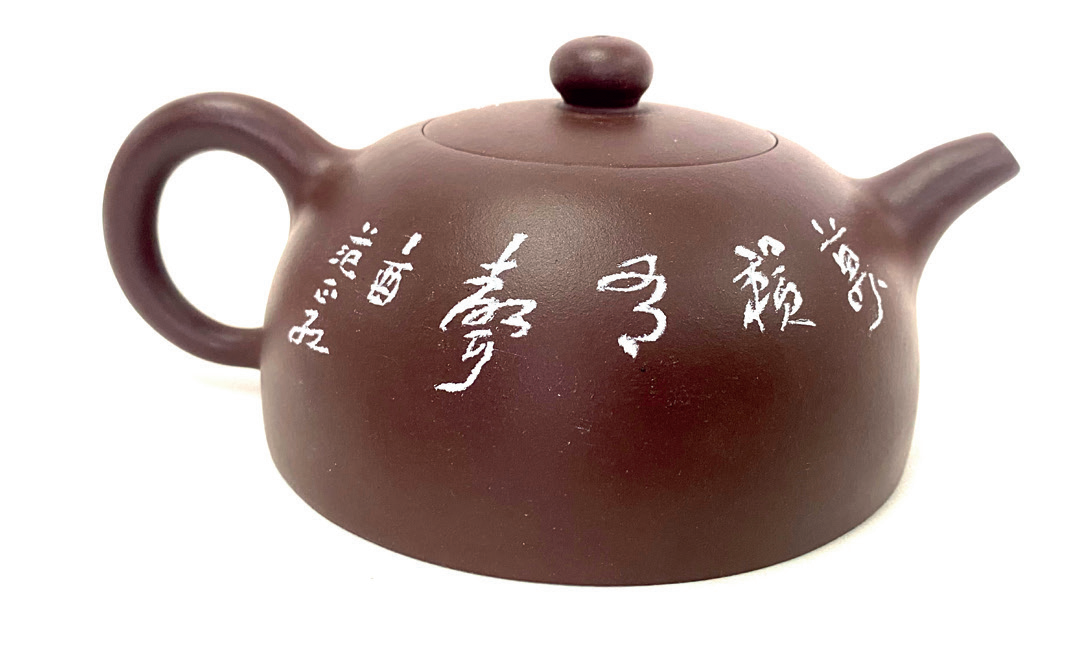 (2)刻壶之法一如刻印之法,挥将寸铁运刀如笔于紫砂之上,信手披削,其意趣自有所显也。若以稿线细细勾勒,刀刃谨慎依从,则必趋于滞也,刻壶定趋于匠而少生机。癸卯夏日,古任范正红。