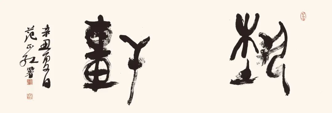 边款/万物尽然。《庄子》齐物论之语也,哲思可谓辽远矣,今人当细思。岁在癸卯夏日于泉城。古任城范正红。