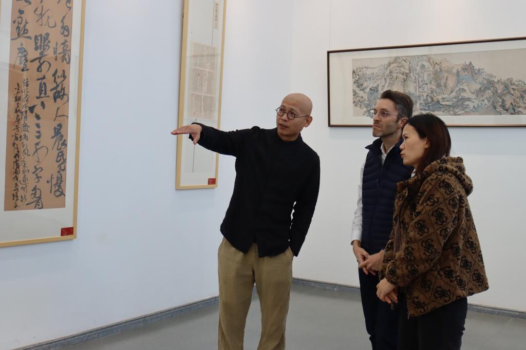 参观过程中,Ferrant Guillaume不时就参展艺术作品的创作理念和呈现方式等方面问题进行询问,表现出浓厚的兴趣和对中国传统文化极高的热情。同时,他对海岱美术馆展现出的工业美感表示赞赏,对艺术展览水平表示充分肯定。他表示,时值中法建交60周年之际,希望通过孔子学院的创建,不断促进两校间的文化艺术交流,为推动中法文明互鉴贡献力量。
