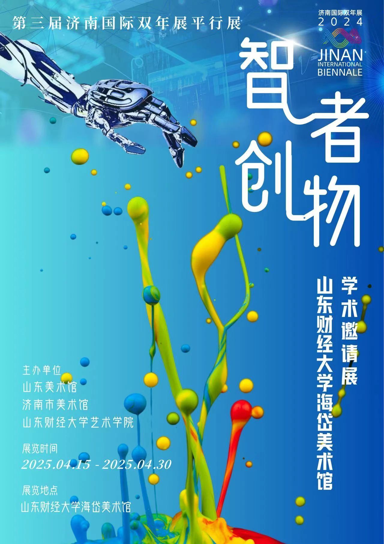 “智者创物”出自苏轼《书吴道子画后》:“智者创物,能者述焉” ,隐喻在人类具有开创意义的人工智能时代背景下,人与人工智能在艺术领域的双向“创造”。第二届济南国际双年展平行展我院策划“共生·问界”中外高校艺术交流展,取得了良好的社会反响。此次,策划展览主题为“智者创物”,既切合 “人智时代” 的大主题,也是对我校“AI-PAI 新财经人才培养”的“艺术”应答。